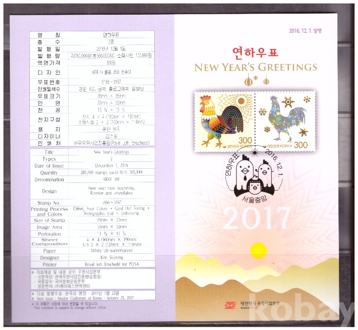 (안내카드) 2016.12.1 연하우표 (접지않음)