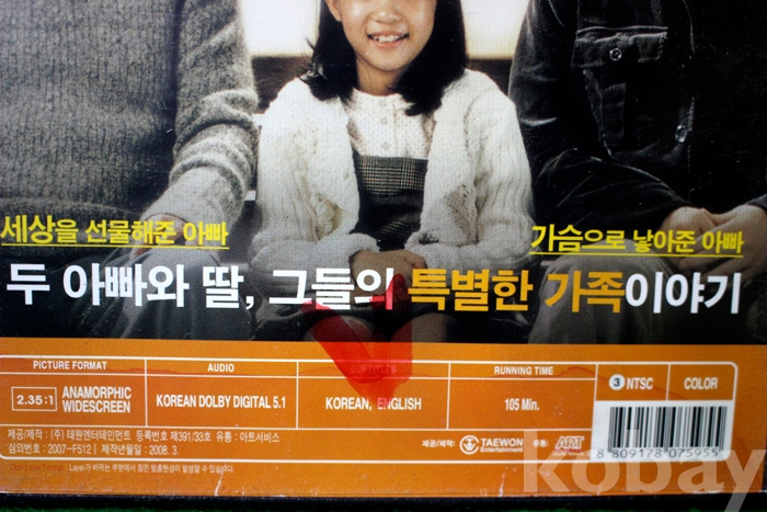 DVD는 정품인데 수출용(대여용?)인지 일반 DVD 케이스보다는 약간 얇은 케이스에 담겨 있음