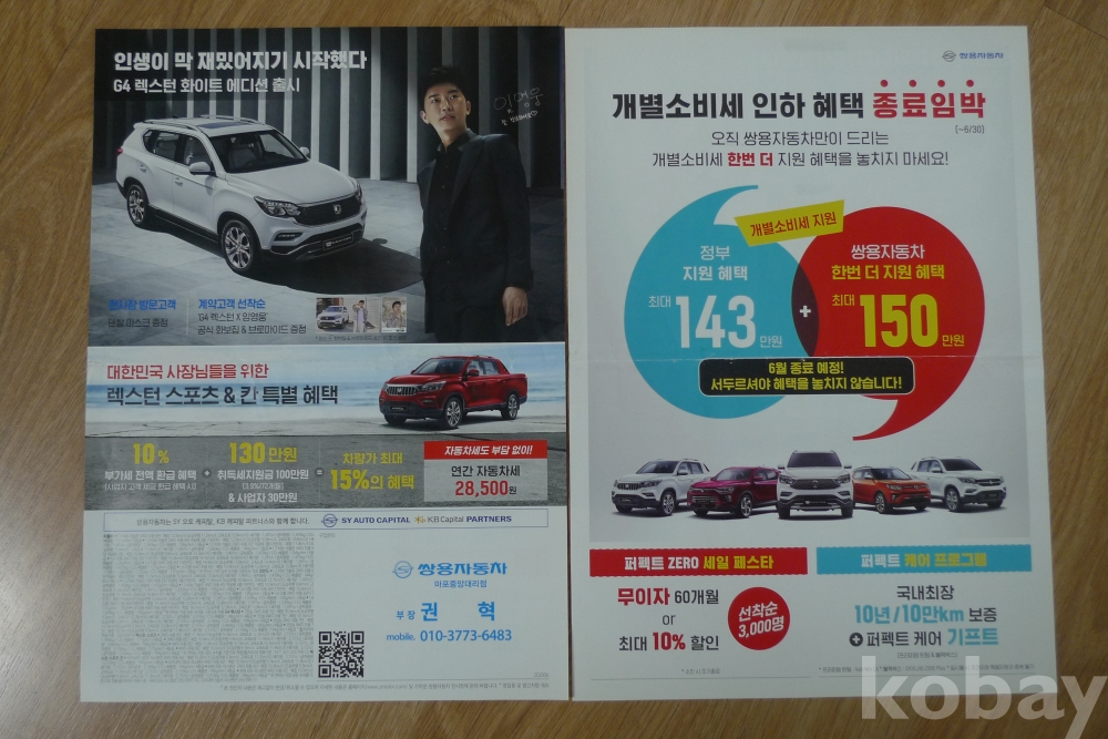 가수 임영웅 모델 쌍용자동차 G4 렉스턴 화이트 에디션 출시 광고 전단지