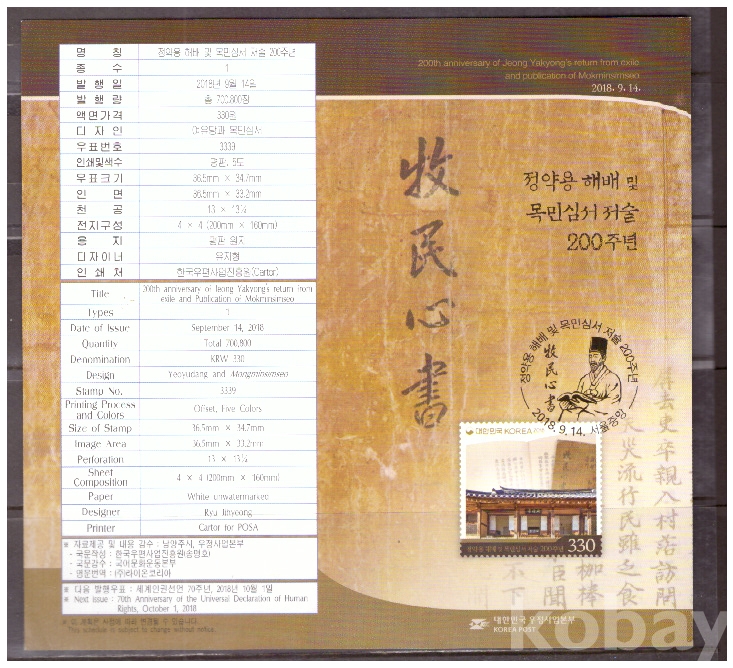 (안내카드) 2018.9.14 정약용 해배 및 목민심서 서술 200주년 (접지않음)
