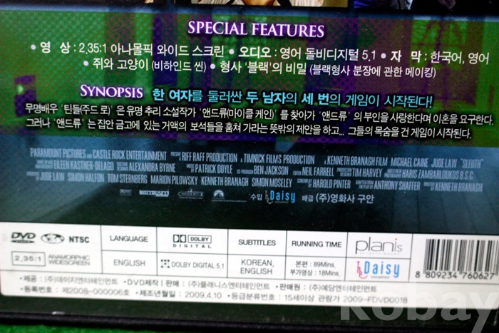 DVD는 정품인데 수출용(대여용?)인지 일반 DVD 케이스보다는 약간 얇은 케이스에 담겨 있음