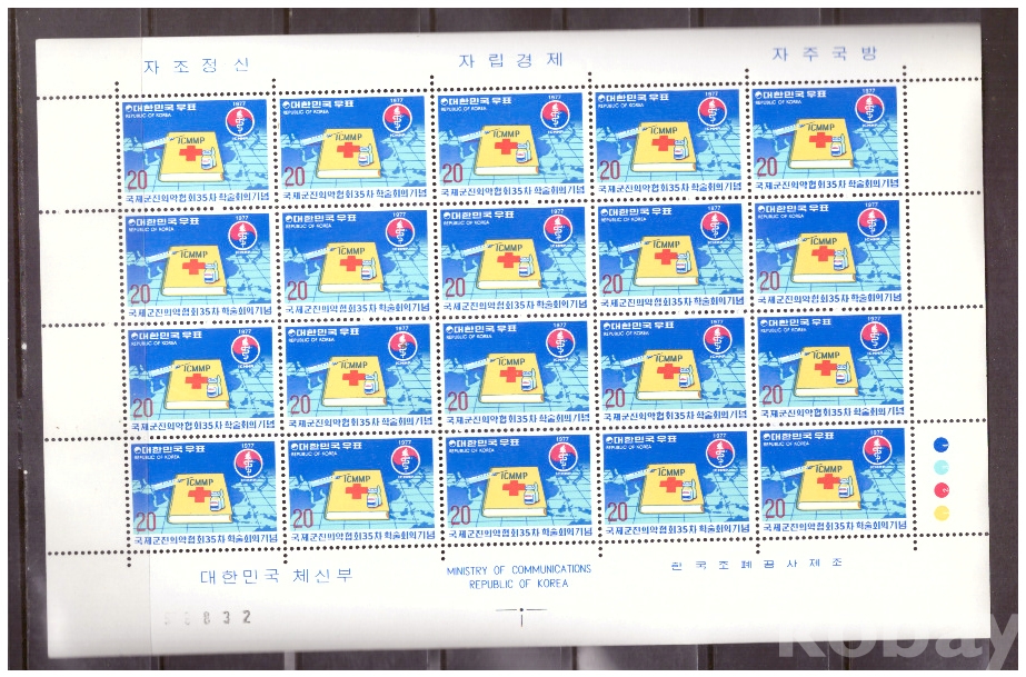 (한국전지) 1977.4.25 국제군진의학협회 35차 학술회의 sheet of 20 MNH