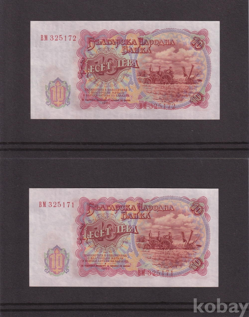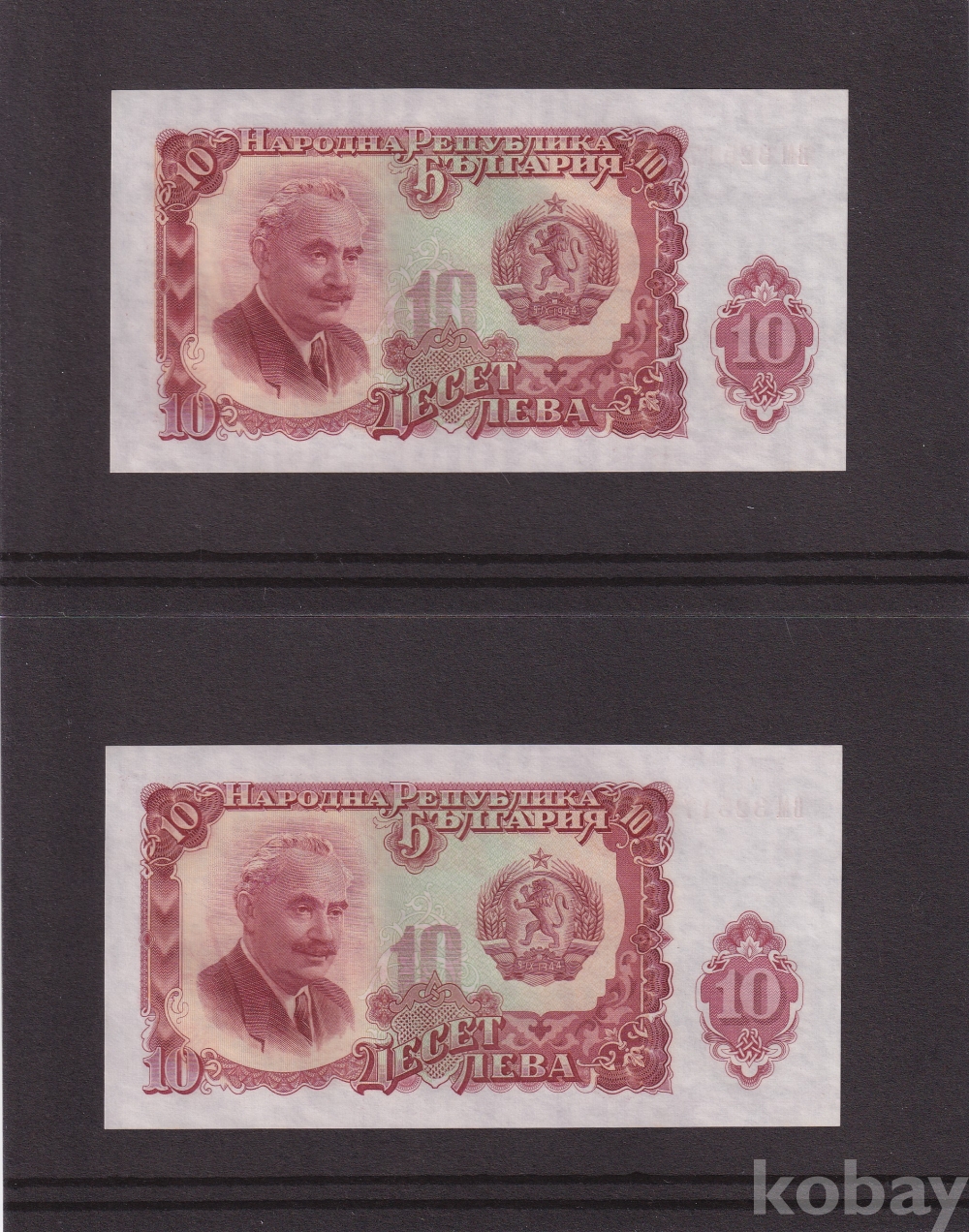 - 불가리아 1951년 10 레바 미사용 지폐 - 2장 일괄