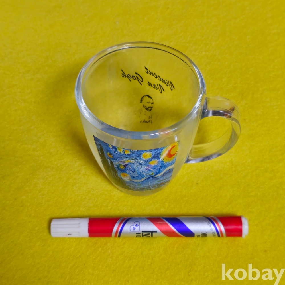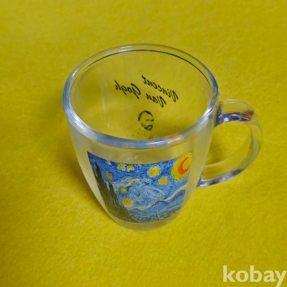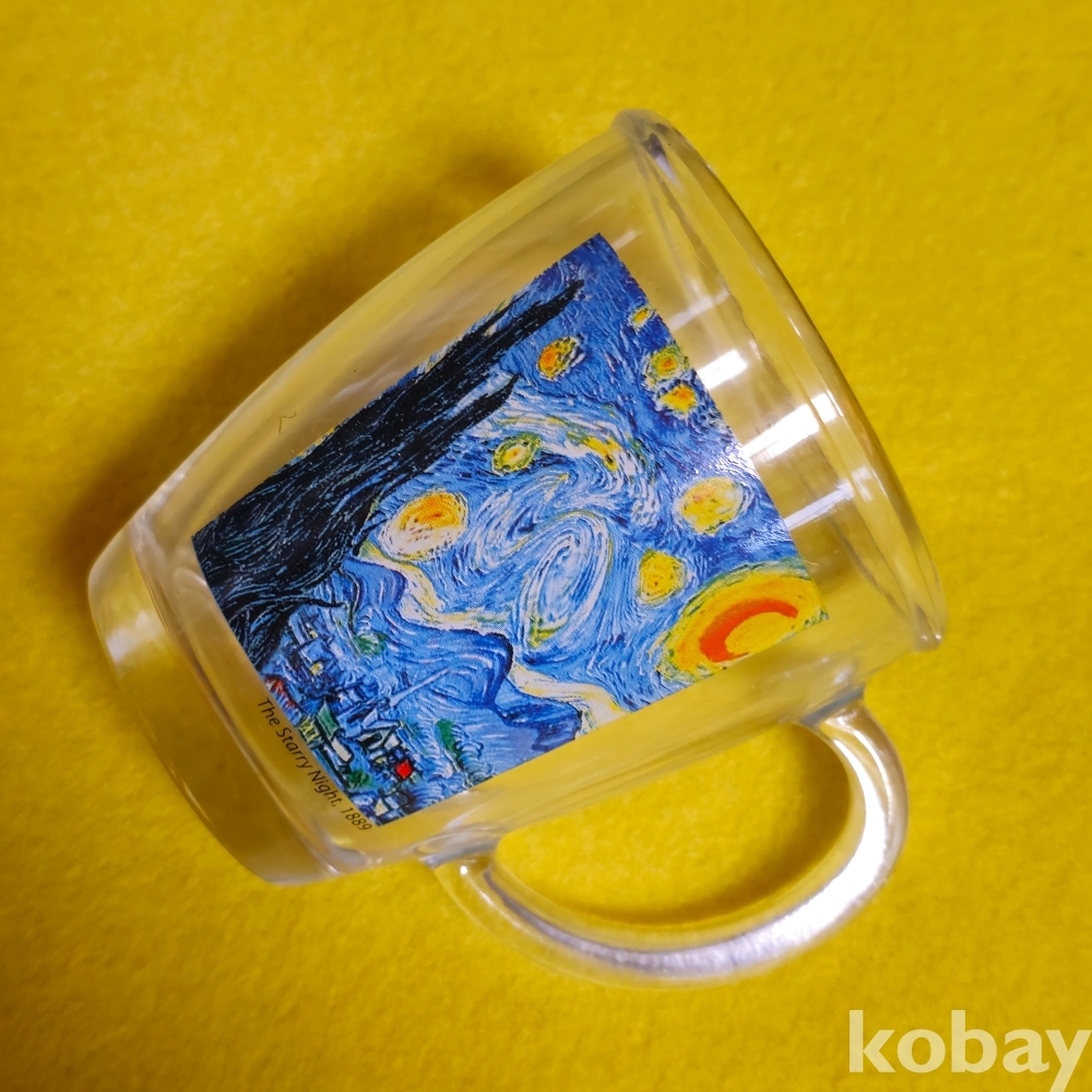 (((근현대사자료))) 오래전 빈센트 반 고흐의 작품이 담긴 손잡이 PARKA 유리컵