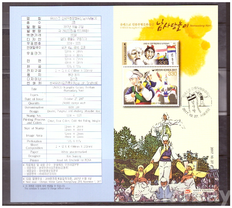 (안내카드) 2017.10.27 유네스코 인류무형문화유산-남사당 놀이 (접지않음)