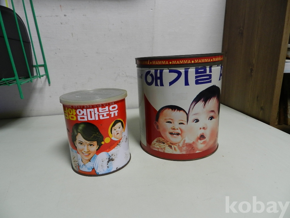 77년 애기밀과 80년 엄마분유 깡통 입니다 그림이 좋와 추억장식품으로 활용하면 좋을거 같고 이미지 처럼 세월비해 상태 양호 합니다 이미지 참고 바랍니다