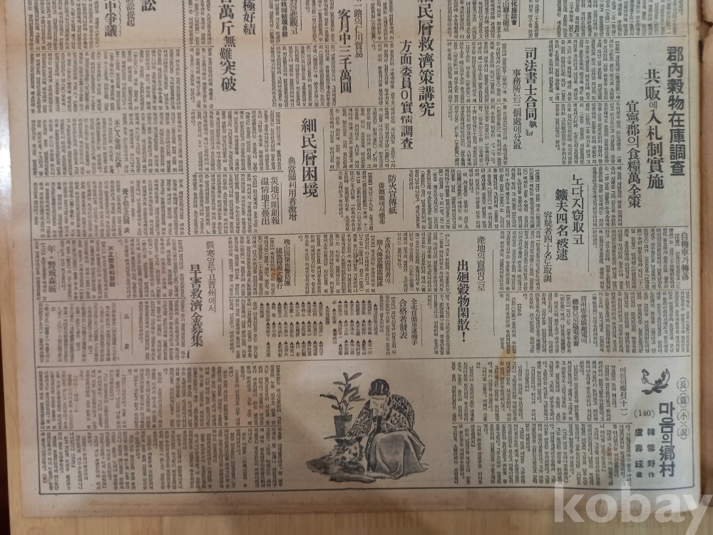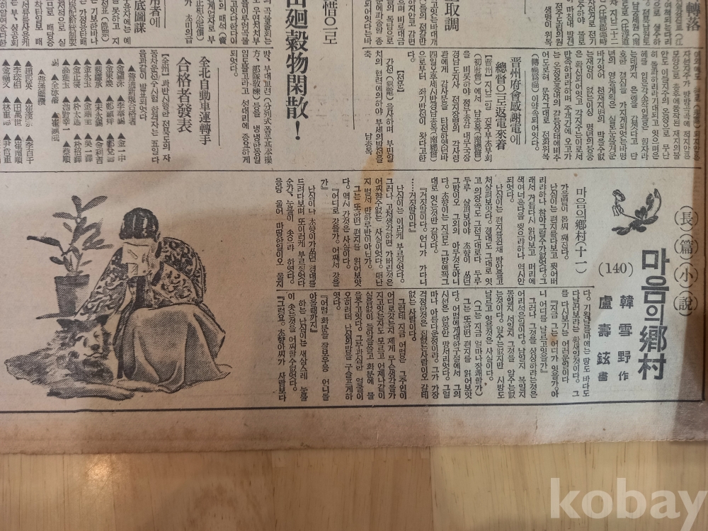 3면: 신문연재 장편소설 <마음의 향촌(140)> 마지막 회,, 한설야 작, 노수현 그림,,,