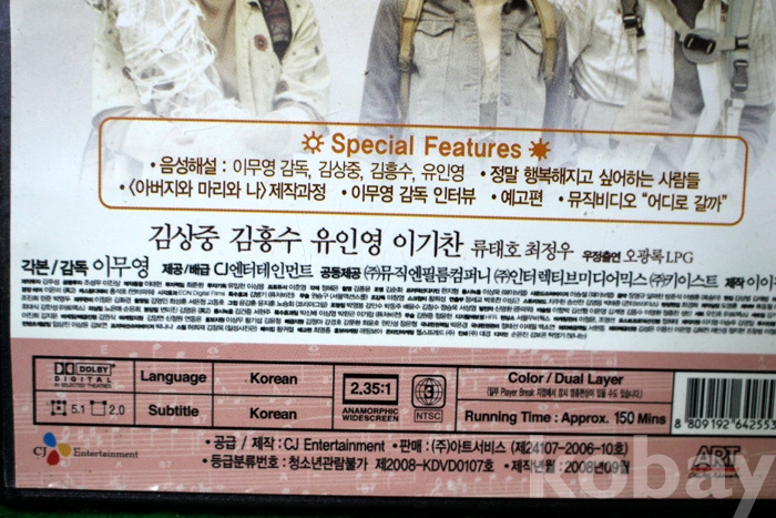 DVD는 정품인데 수출용(대여용?)인지 일반 DVD 케이스보다는 약간 얇은 케이스에 담겨 있음