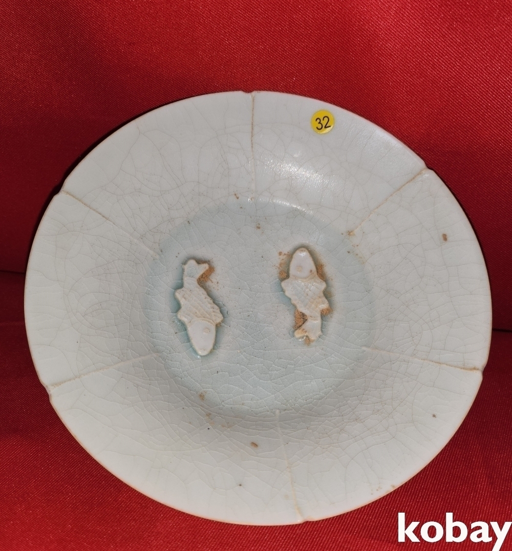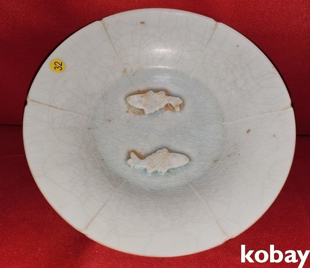 짱짱한 연대 갖춘 백자 쌍어문 화형 완입니다,