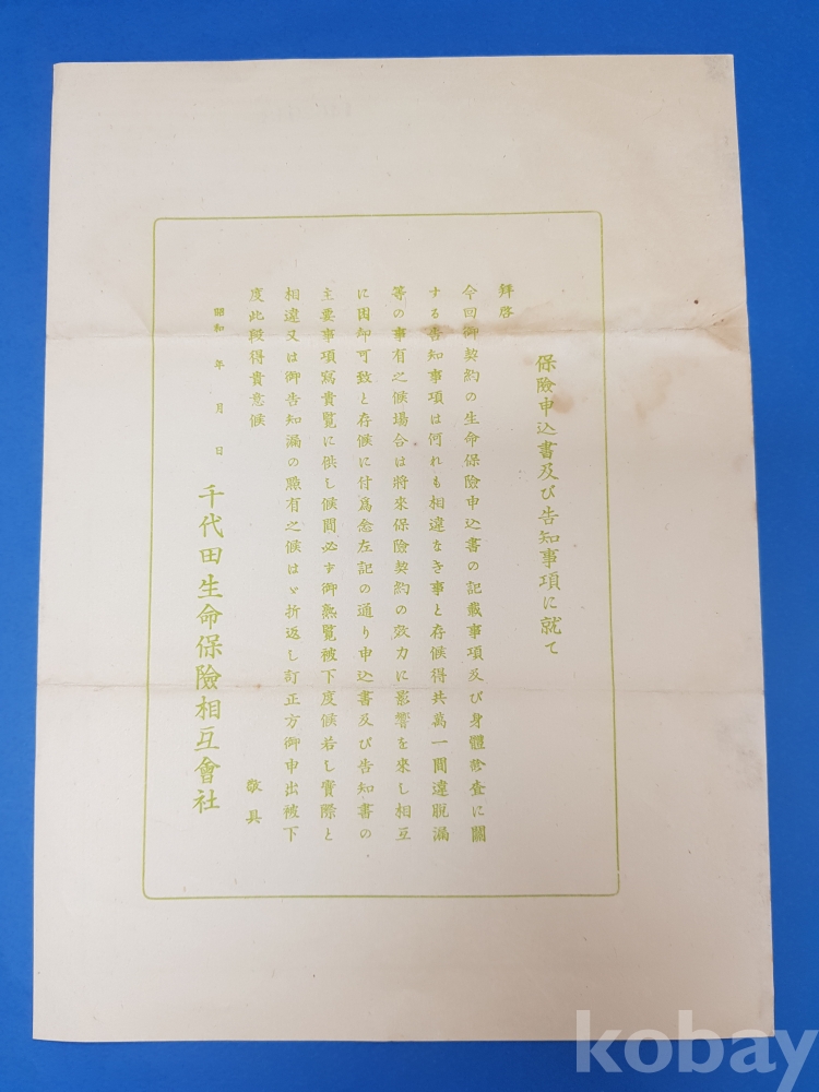 **** 1939년 千代田생명보험상호회사 [보험신립 및 告知寫]