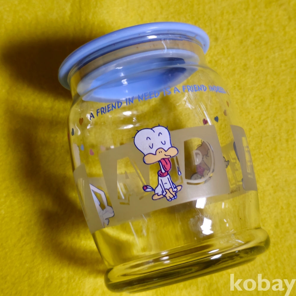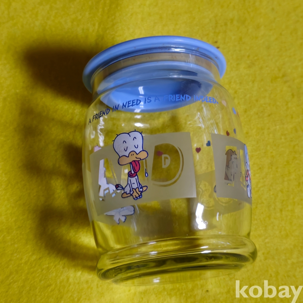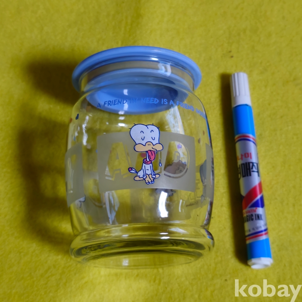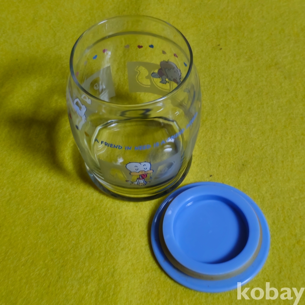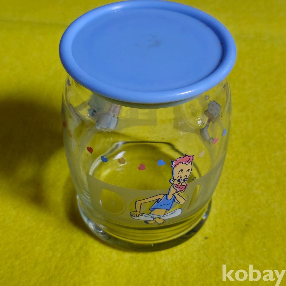 (((근현대사자료))) 오래전 둘리케릭터가이쁜 밀폐 유리용기 (높이 12.5 cm)
