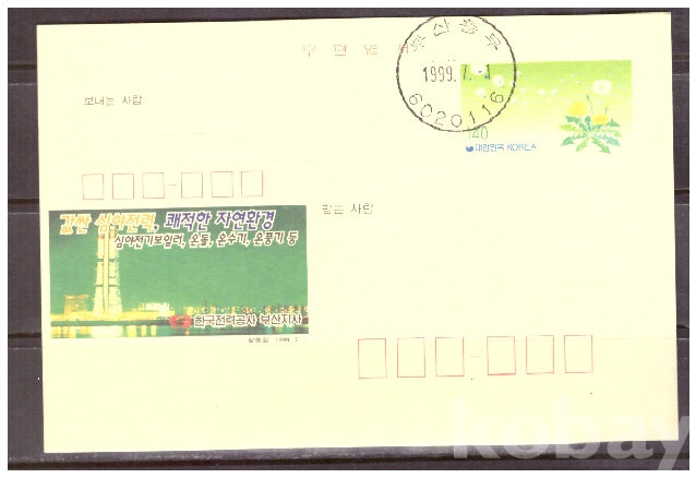 (광고엽서) 1999.7.1 지방판 LAPC264 한국전력공사부산지사 (민들레 140원)(초일일부인)