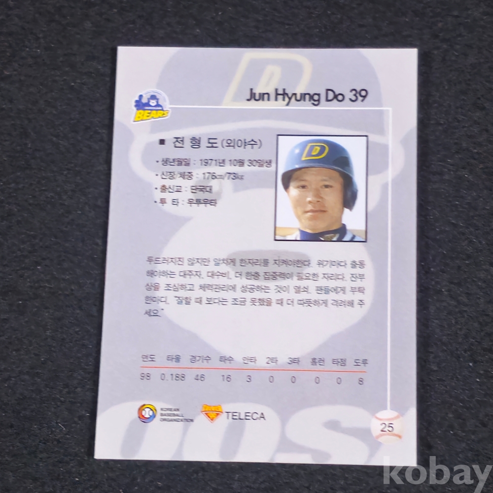 (((프로야구자료))) 1998년 두산베어스 외야수 전형도 스포츠 카드 (KBO/TELECA)