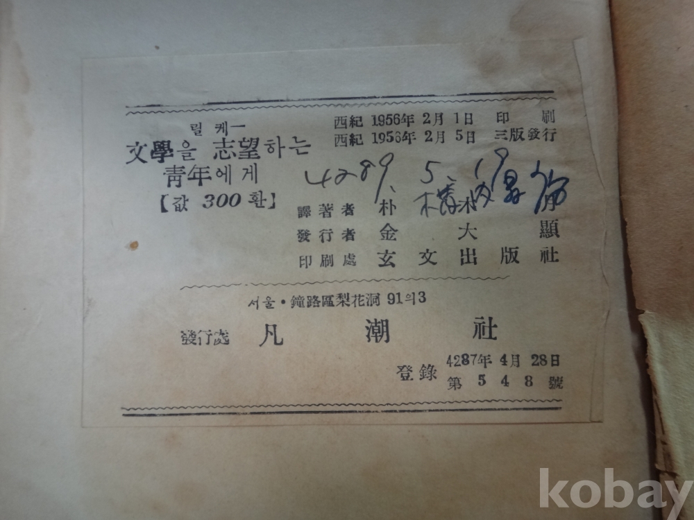 문학을 지망하는 청년에게 - 박목월 역 (부, 릴케 시초, 1956년, 범조사)