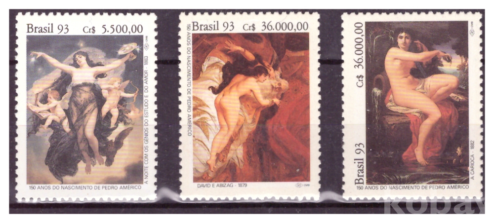 (누드명화) 브라질(Brazil) 1993 Pedro Americo 누드화 3완 MNH