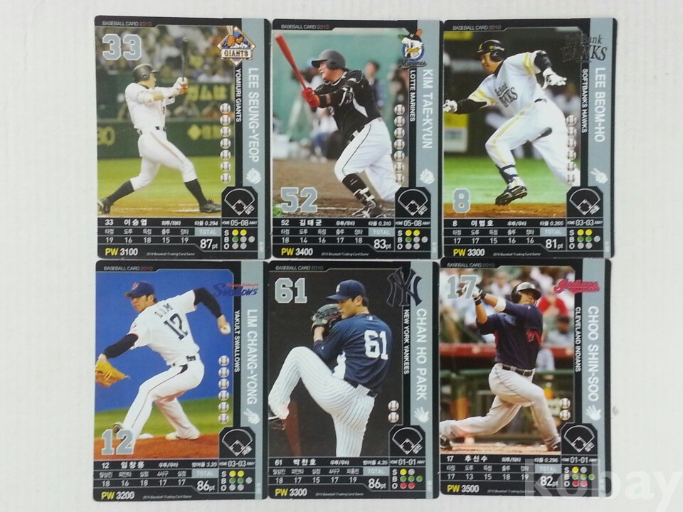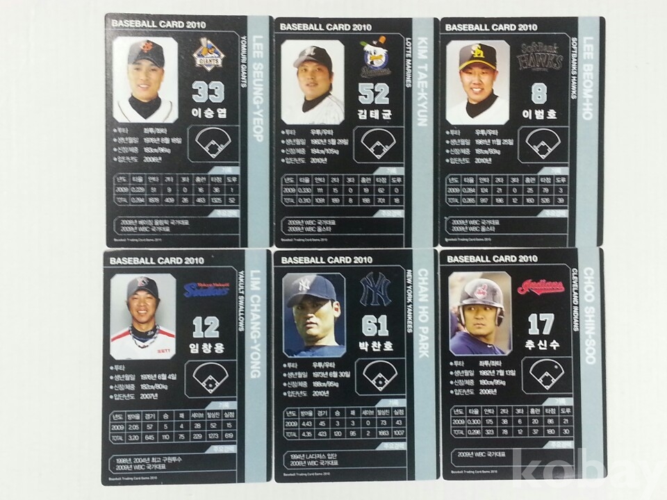 2010년 미국, 일본 프로야구에서 활약한 한국 선수 스포츠카드 6장