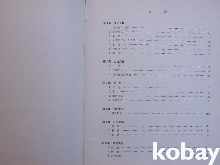 본문은 모두 13장으로 구성하여 선사문화, 고분문화, 건축, 불교조각, 석조미술, 금속공예, 회화, 도자공예, 서지, 목공예, 보존과학, 인류학, 민속으로 하였고 각 장마다 작은 구분을 하며 많은 참고도판과 함께 서술하였다. 필자는 따로 밝히지 않았으며 맨 뒤에 <참고문헌>은 더욱 세분하여 29가지로 주제를 나눠서 더 공부할 참고문헌들을 소개해 놓았다. 한자어를 섞어서 쓴 글이 대부분이다.