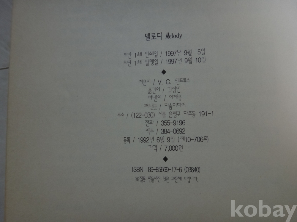 멜로디 (1997년, V.C. 앤드류스 저, 다솜미디어)