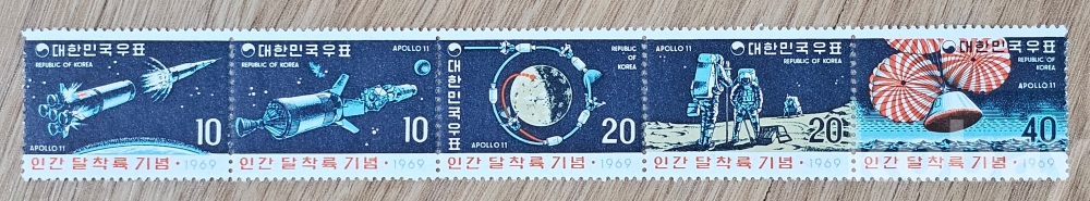 1969년 인간의 달 착륙 기념 우표 5종 연쇄