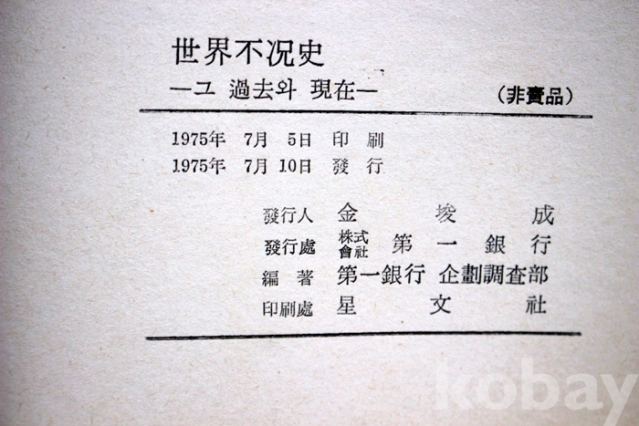 世界不況史 (세계불황사) : 그 과거와 현재 - 1975년. 제일은행기획조사부 발행