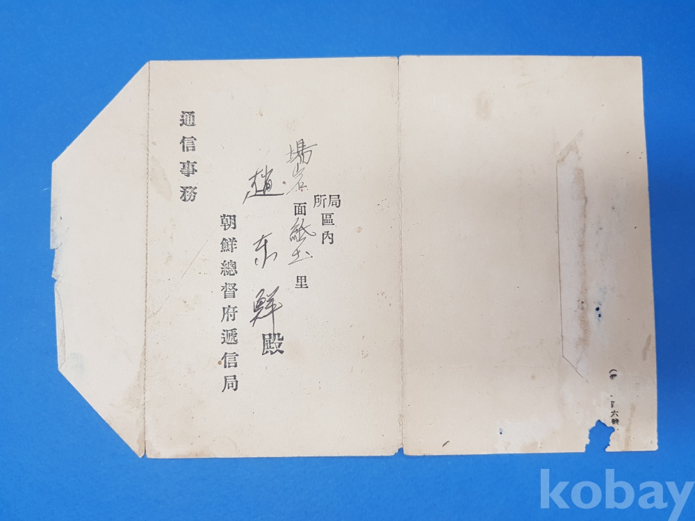 **** 일제강점기 조선총독부체신국에서 장암면으로 보낸 조선간이생명보험 관련 통신사무 봉함엽서 실체