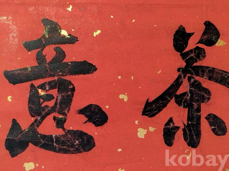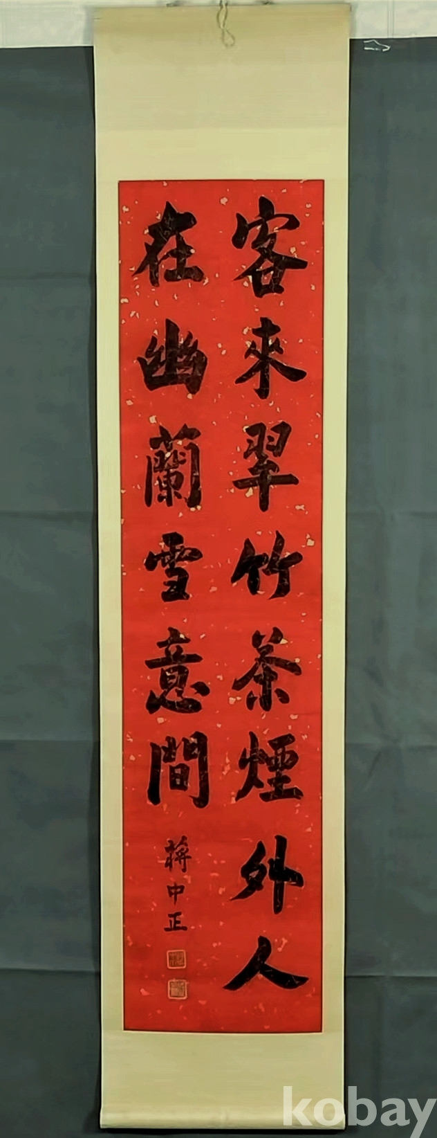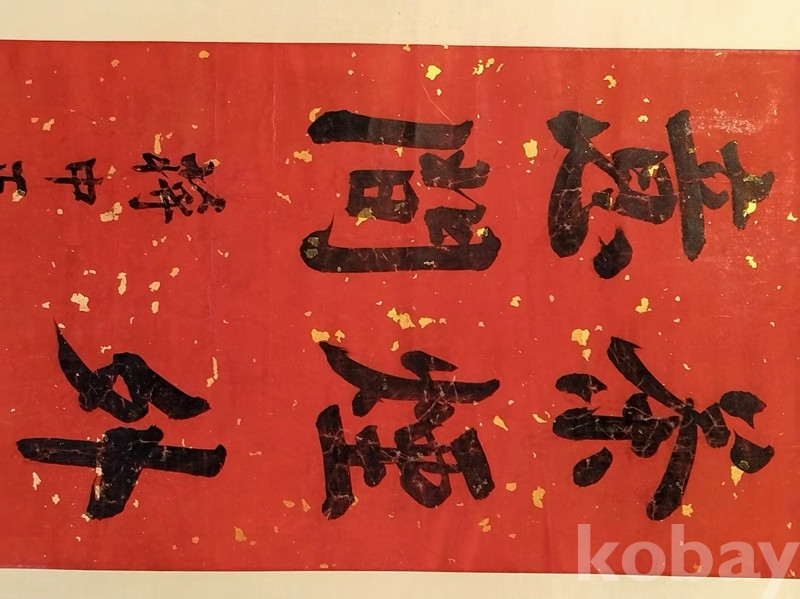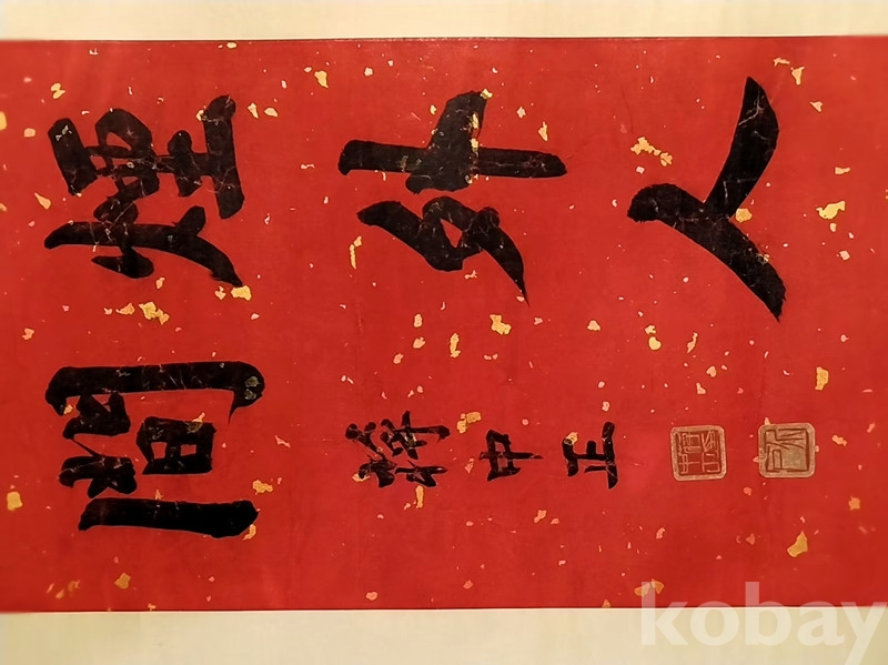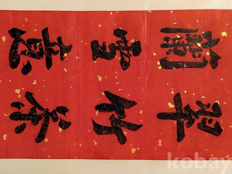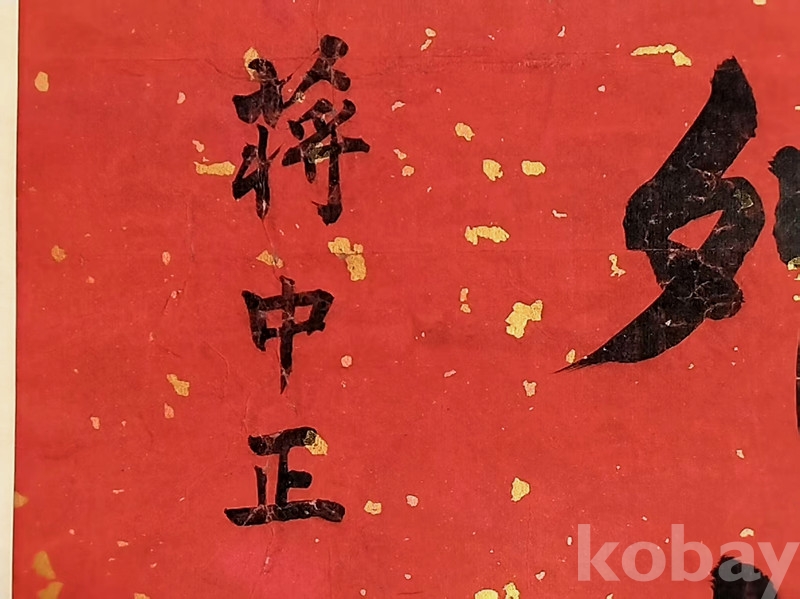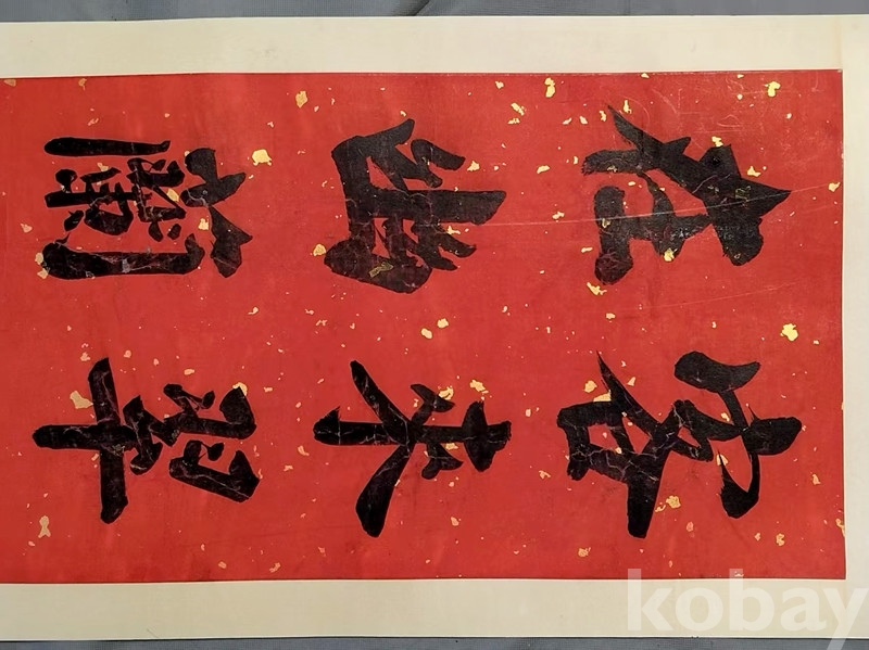 민국시대 홍색 금박전지에 쓴 작품으로, 경매사진의 색감이 밝고 튀어보입니다만