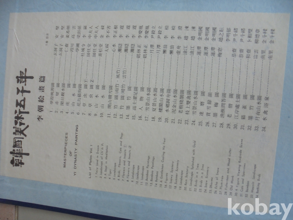 한국미술오천년 이조화화편 1번에서 34번까지 완질인 유명한 안견 강희언 고운 신사임당등등 34점이 특수영인하고