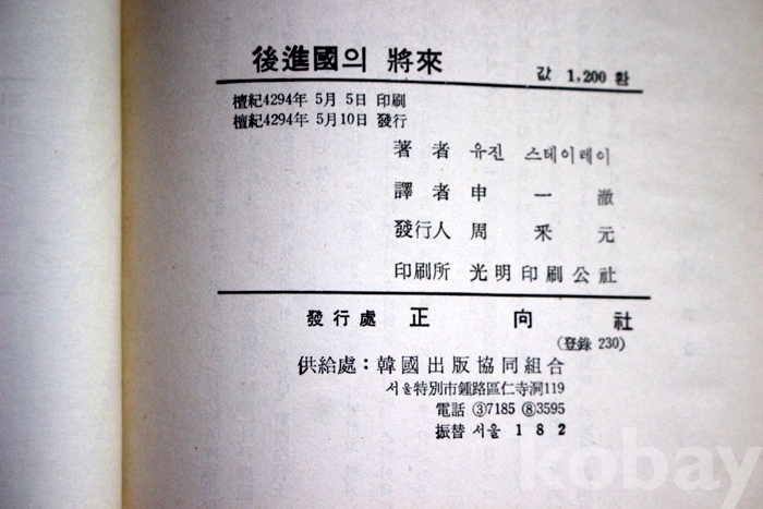 (교과서) 후진국의 장래 - 신일철 譯 / 1961년. 정향사 발행