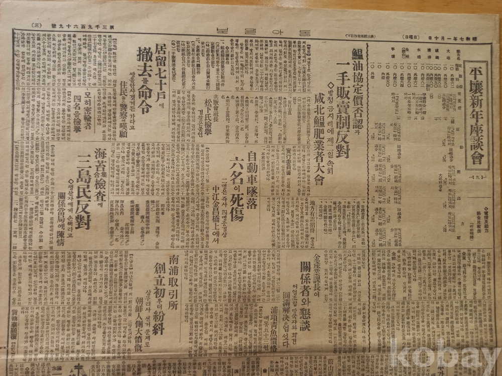 東亞日報 1932년(昭和 7년 ) 1월 10일 일요일