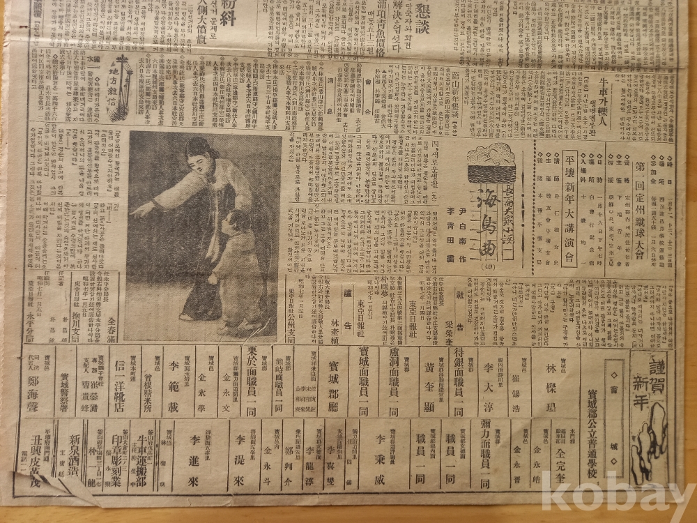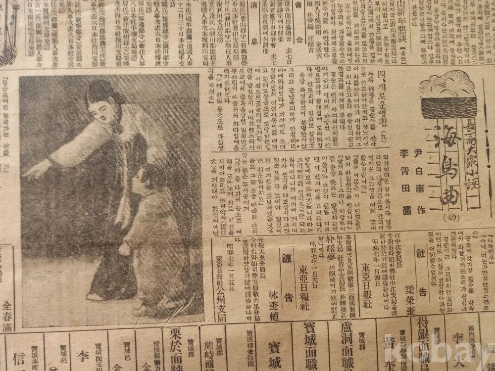 3면: 신문연재 장편대중소설 <해조곡(49 윤백남 작, 이청전 화,,,