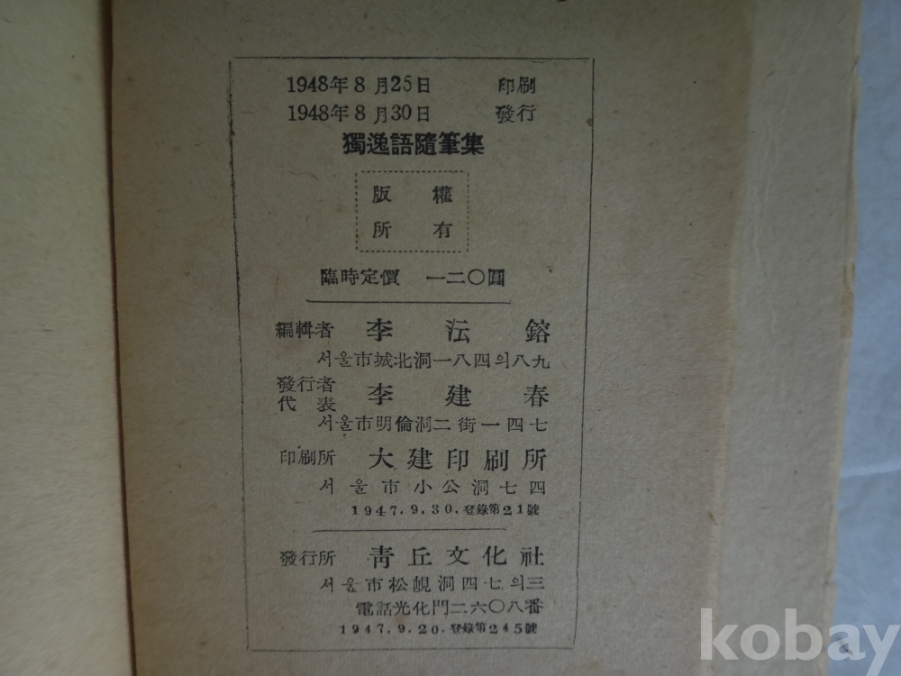 | 제조국 | 한국 | 연대 | 1945년~1959년 |