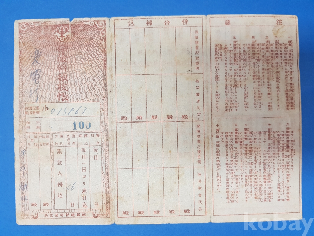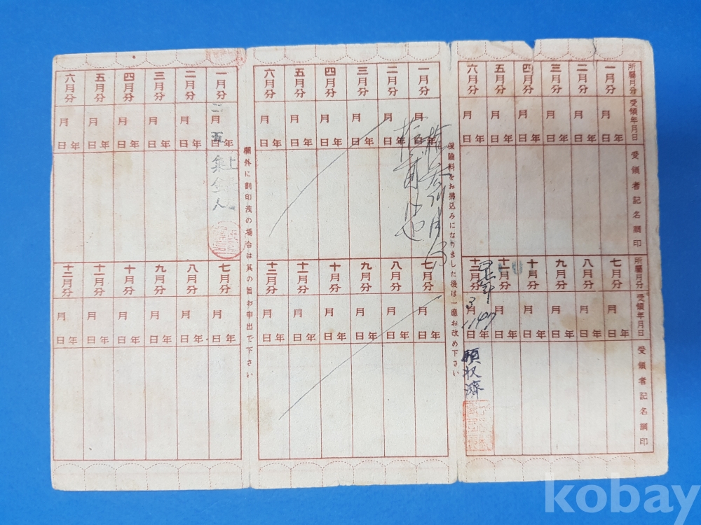**** 1947년 조선총독부 체신국 保險料領收帳/*일제강점기 領收帳을 해방후까지 계속사용 하였음