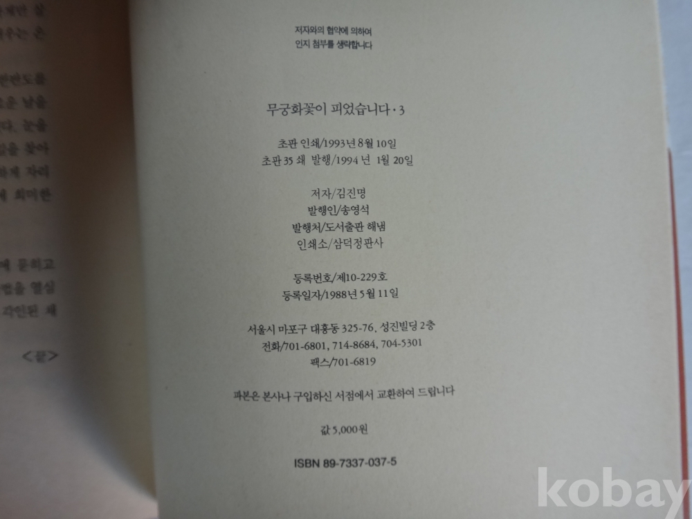 무궁화 꽃이 피었습니다 (1994년, 김진명 저, 도서출판 해냄)