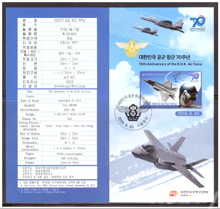 (안내카드) 2019.9.20 대한민국 공군 창군 70주년 (접지않음)