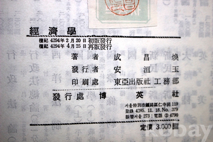 (교과서) 경제학 - 성창환 著 / 1961년. 박영사 발행