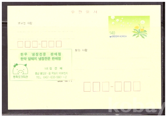 (광고엽서) 1999.7.5 지방판 LAPC268 동축포크회관 (민들레 140원)