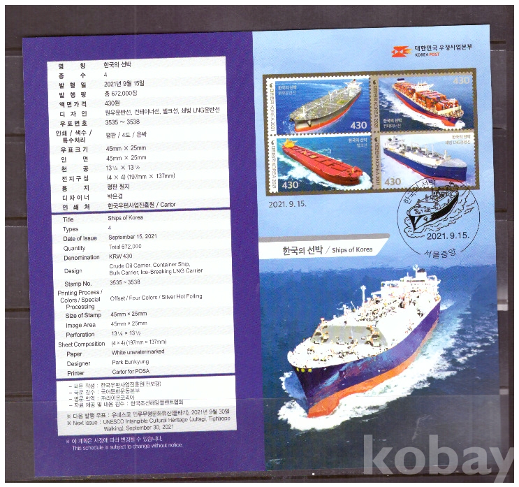 (안내카드) 2021.9.15 한국의 선박 (접지않음)
