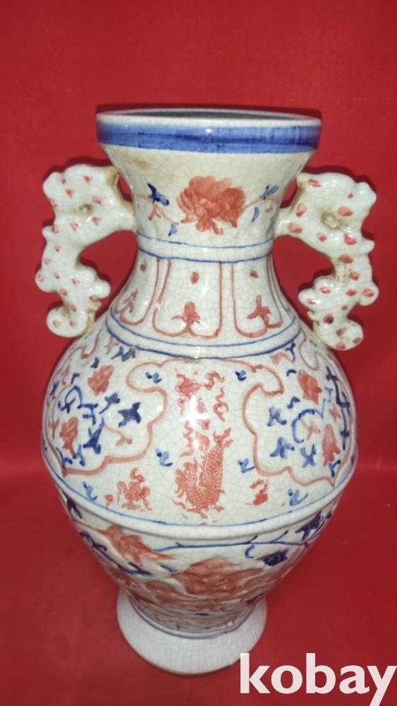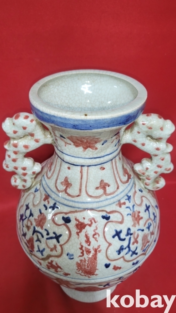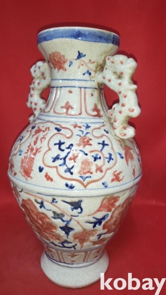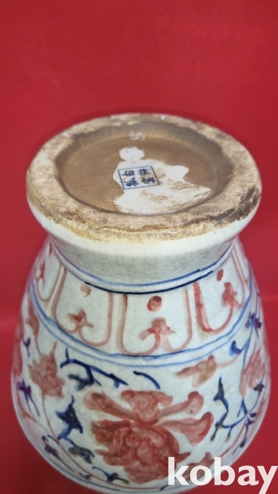 백허고요 청화 유리홍 양이 화훼문 광구병입니다,