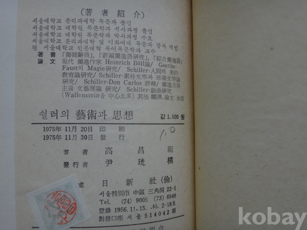 윌러의 예술과 사상 (1975년, 고창범 저, 일신사)