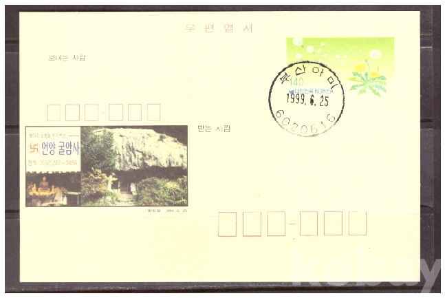 (광고엽서) 1999.6.25 지방판 LAPC256 화장산미타굴굴암사 (민들레 140원) (초일일부인)