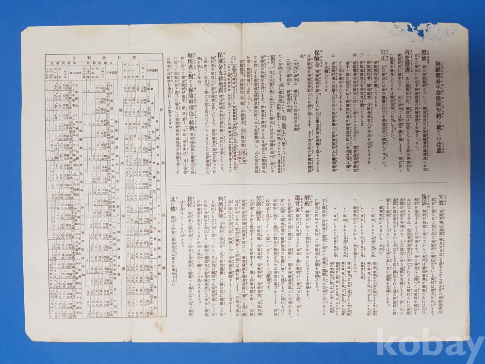 **** 일제강점기 조선간이보험계약 관련 주의서 리후렛