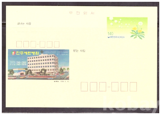 (광고엽서) 1999.6.10 지방판 LAPC 241 진주세란병원 (민들레 140원)