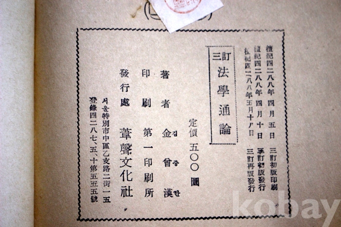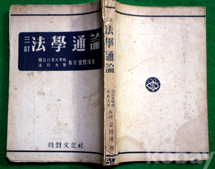 (교과서) 법학통론 - 김회한 著 / 1955년. 위성문화사 발행