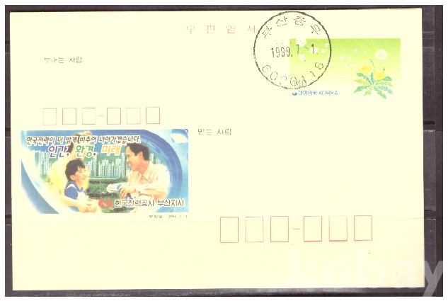 (광고엽서) 1999.7.1 지방판 LAPC266 한국전력공사부산지사 (민들레 140원) (초일일부인)