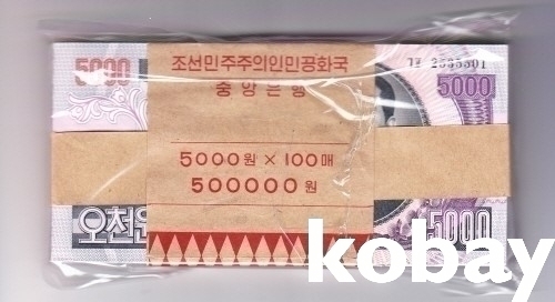 - 중앙은행권 5000원권(2002년)1다발100매 완전미사용 입니다.