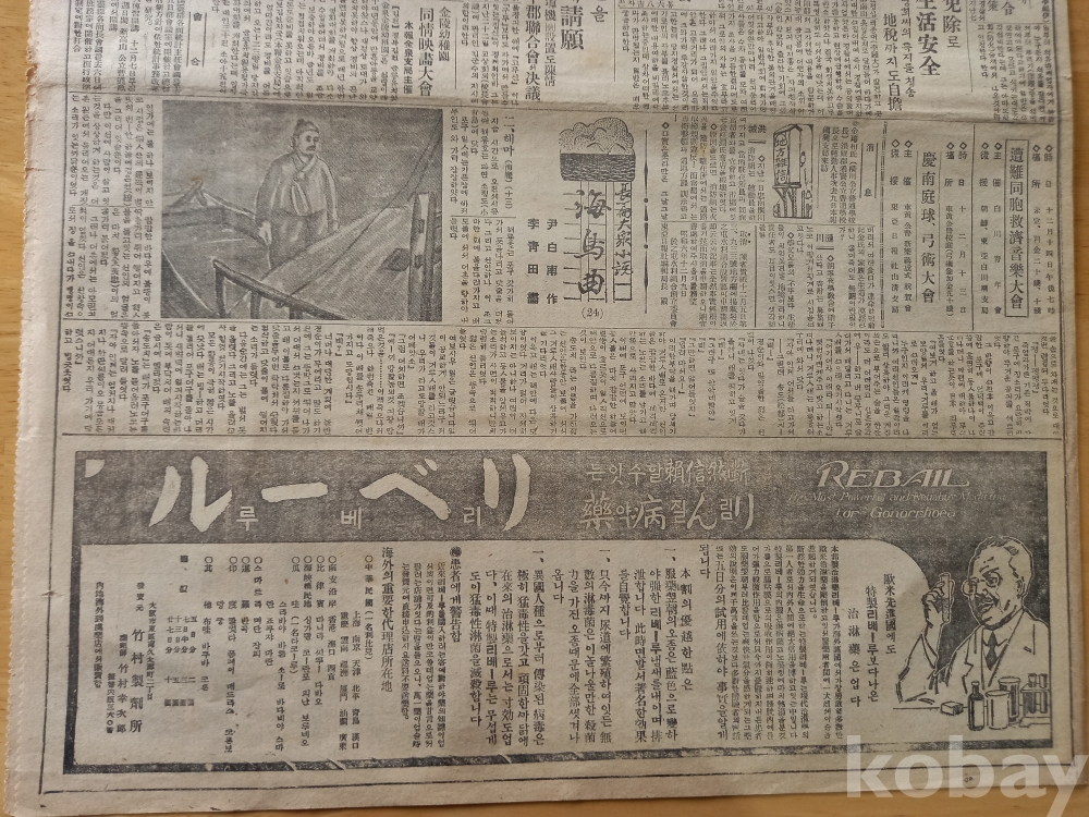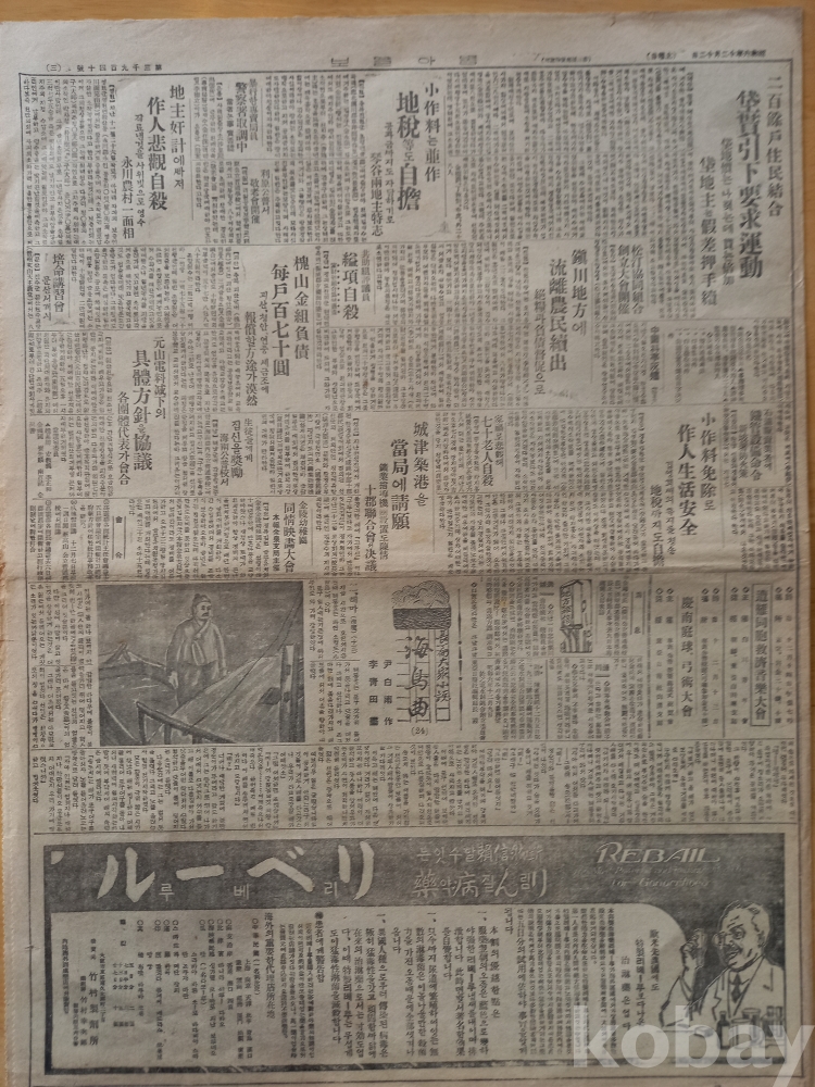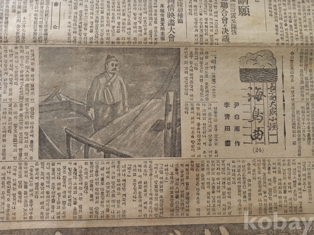 3면: -신문연재 장편대중소설 <해조곡(24)> 윤백남 작, 이청전 화,,,
