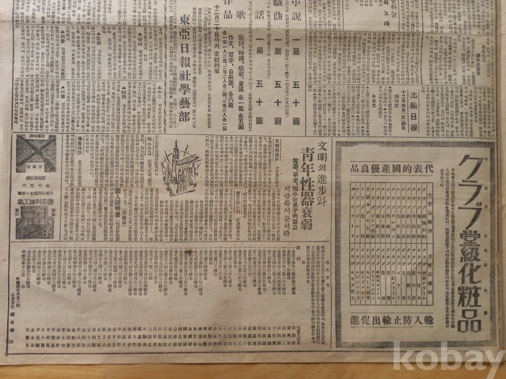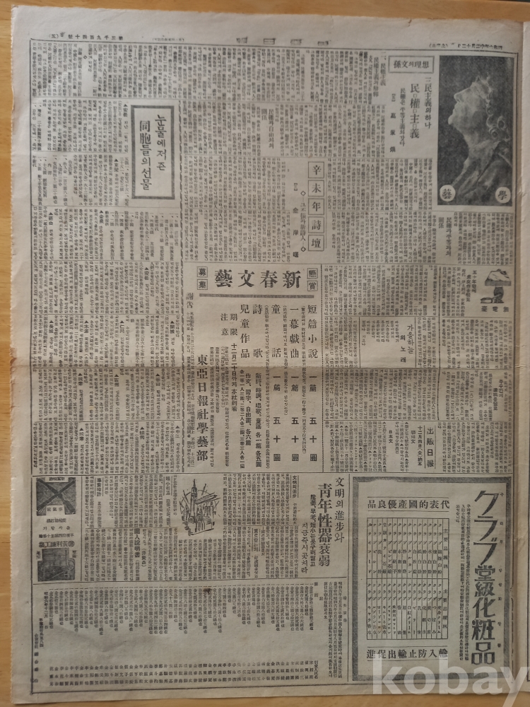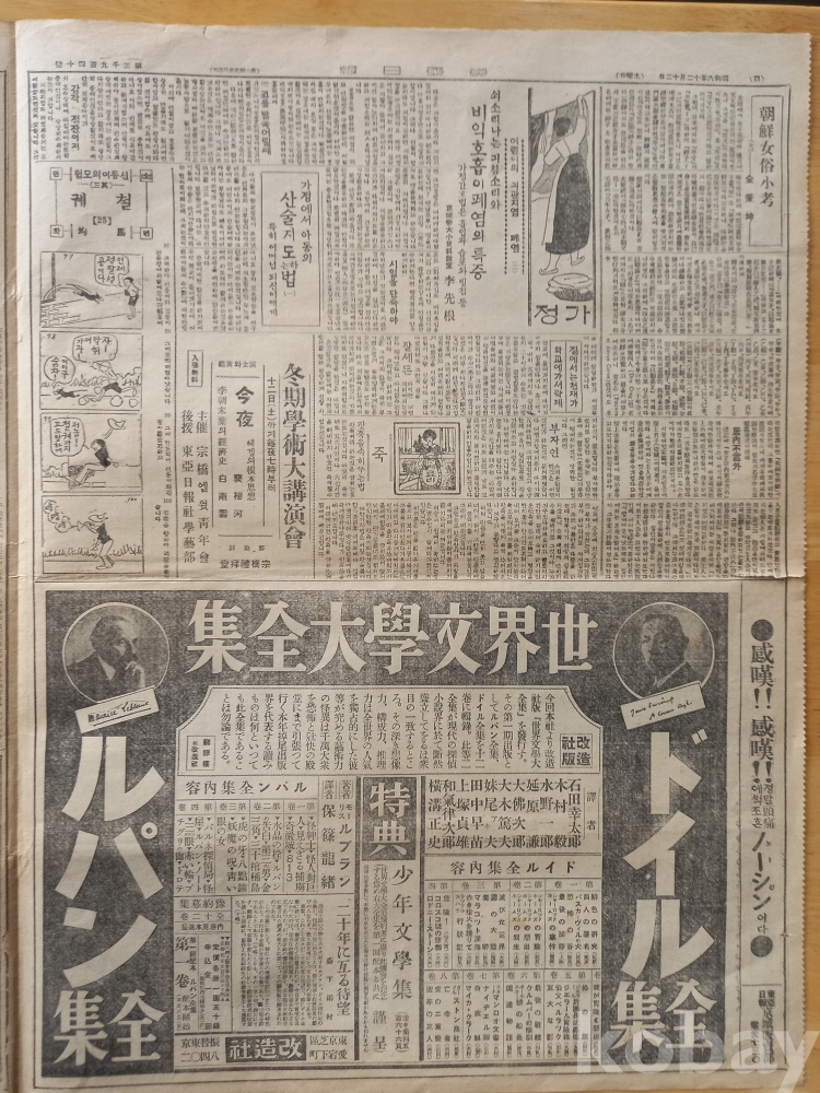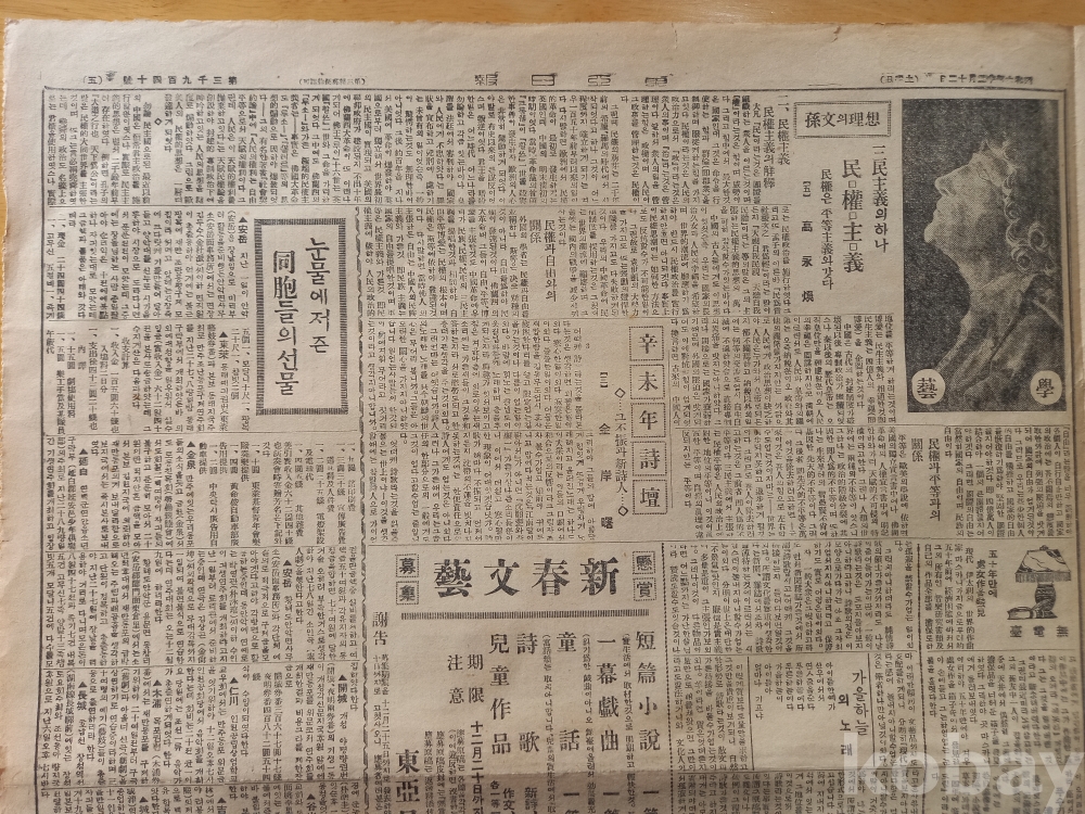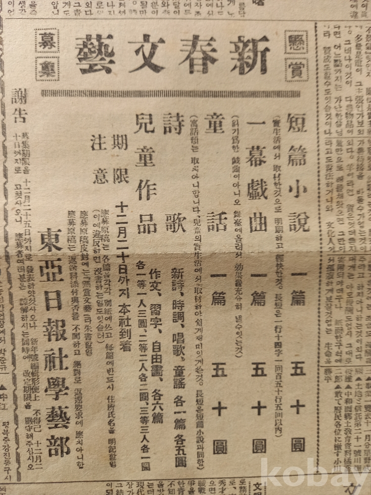 -중앙에 <신춘문예 현상모집>광고. 단편소설, 일막희극, 동화, 시가, 아동작품 등..