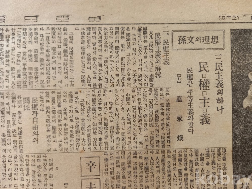 5면: 상단에 <손문의 사상-삼민주의의 하나 민권주의:민권은 평등주의와 같다 (5)-고영환>의 기고 글...