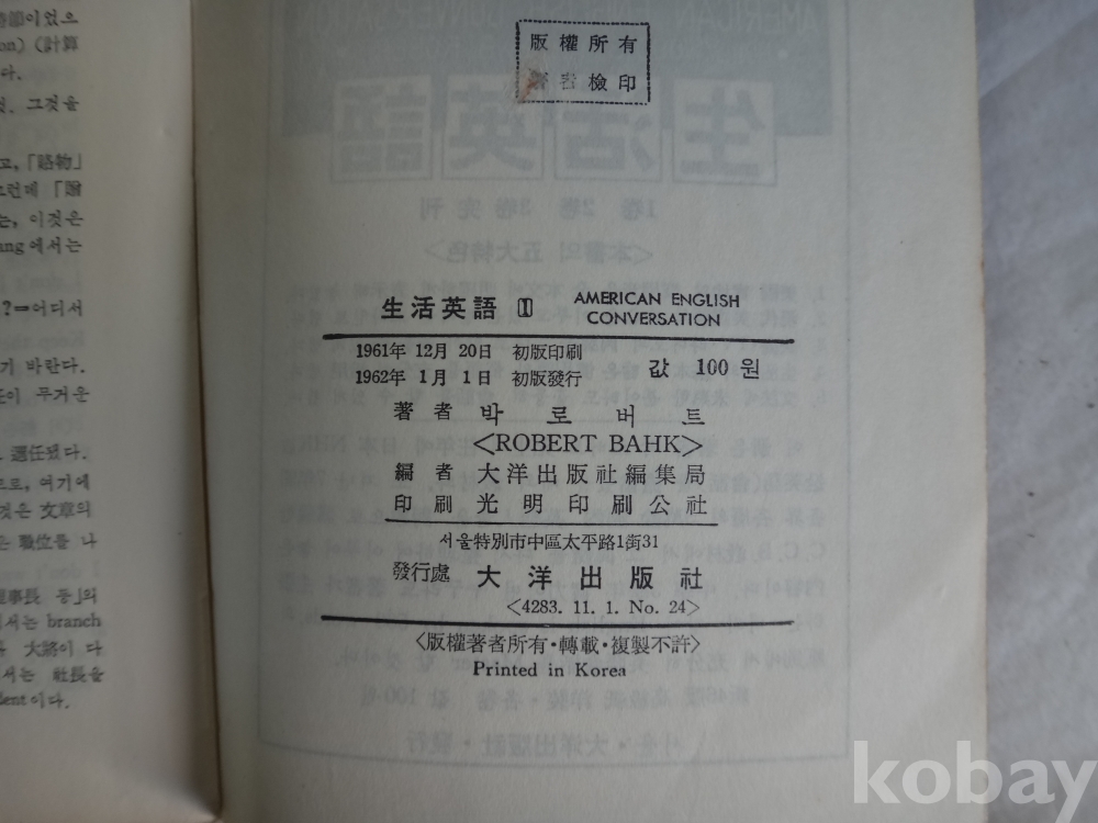 미국식 영어회화 - 영어는 500개의 단어로 표현된다 (할리우드 스타일, B.로버트 지음, 1962년, 대양출판사) 25.7.11