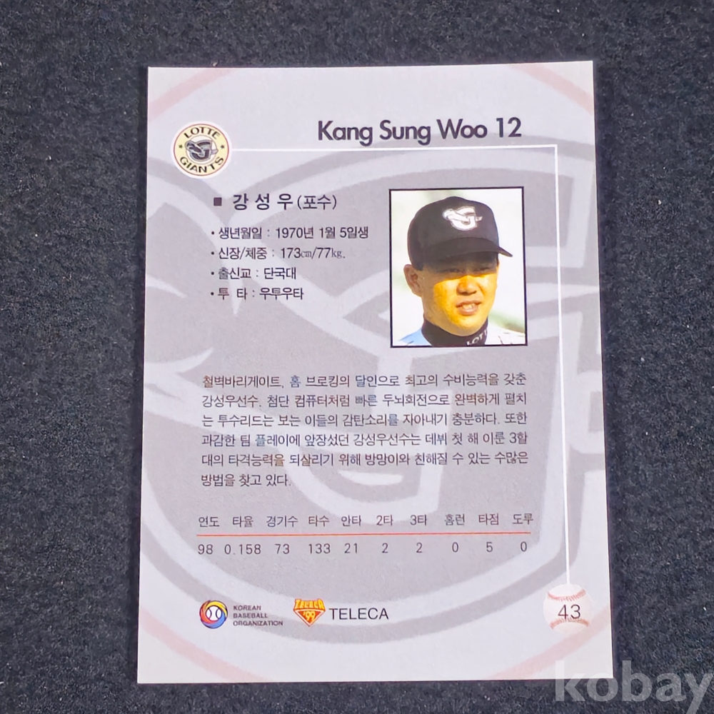 (((프로야구자료))) 1998년 롯데자이언츠 포수 강성우 스포츠 카드 (KBO/TELECA)